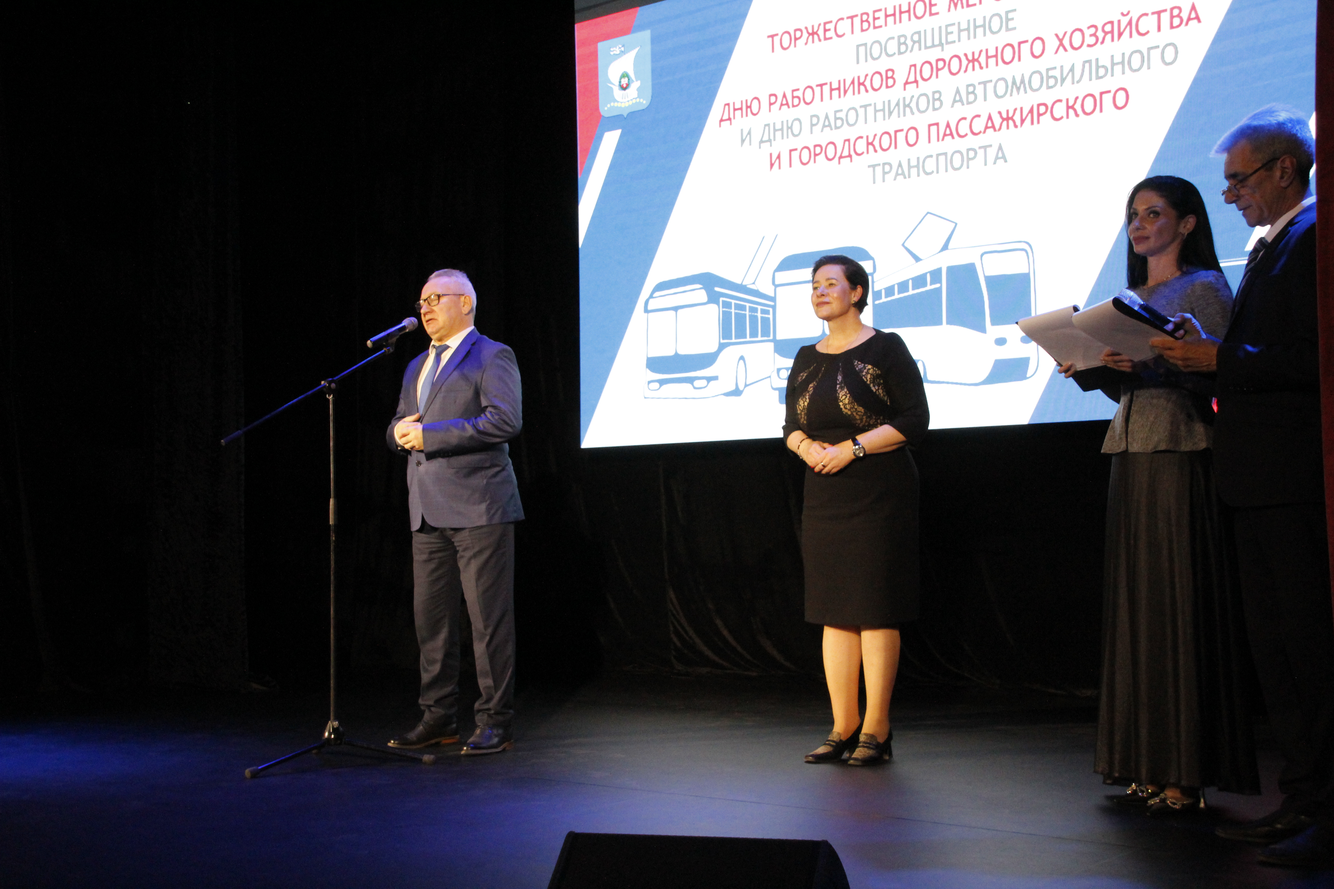 Праздничная встреча прошла в театре эстрады. Мероприятие проведено впервые для работников дорожной и транспортной отрасли.