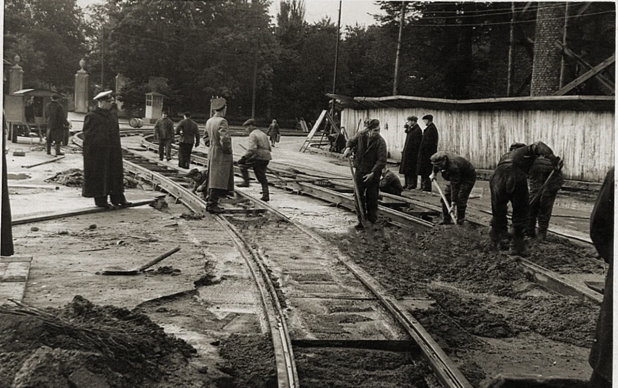 7 ноября 1946 года, сразу после демонстрации трудящихся по площади Трех Маршалов, от улицы Житомирской в сторону зоопарка пошел первый трамвай, открывший регулярное трамвайное сообщение после войны.