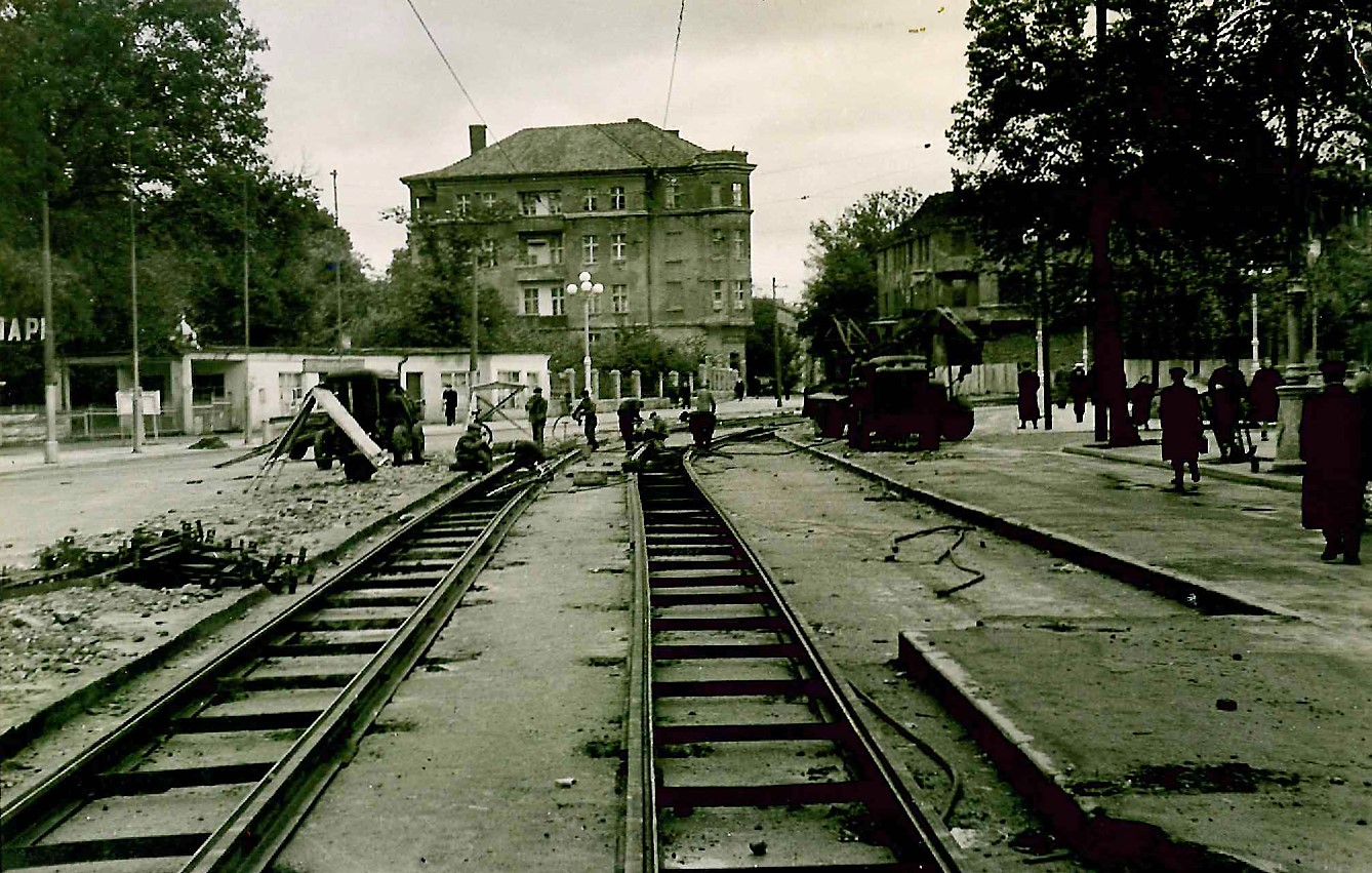 После окончания войны перед советскими властями встал сложнейший вопрос восстановления городского транспорта. Трамвайное хозяйство находилось в катастрофическом состоянии: из всех депо восстановлению подлежало только то, что располагалось у главного вокзала, а из тяговых подстанций – лишь одна. Контактная сеть была повреждена на 80%, что делало практически невозможным запуск движения.